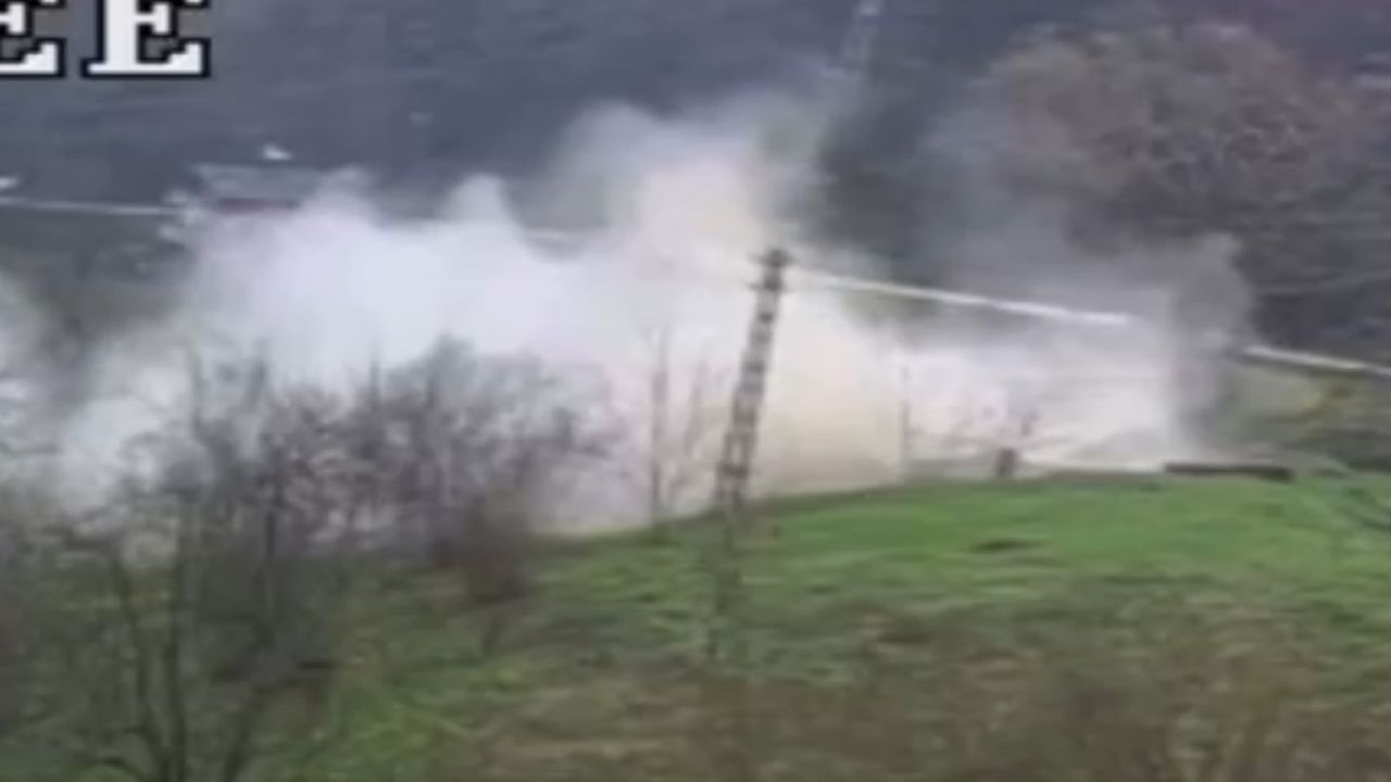 Olay, Cide'ye bağlı Alayüz köyü Örtülü Mahallesi'nde meydana geldi. Kentte etkili olan kar yağışı sonrası toprağın yumuşamasıyla birlikte birçok noktada heyelan meydana geldi. Ekiplerin bölgede yaptığı incelemelerin ardından Mehmet Altıntaş'a ait 2 katlı ev, heyelan riski nedeniyle tedbir amaçlı tahliye edildi. Boşaltılan bina bir süre sonra tamamen çökerken, o anlar güvenlik kamerasına yansıdı. (DHA)