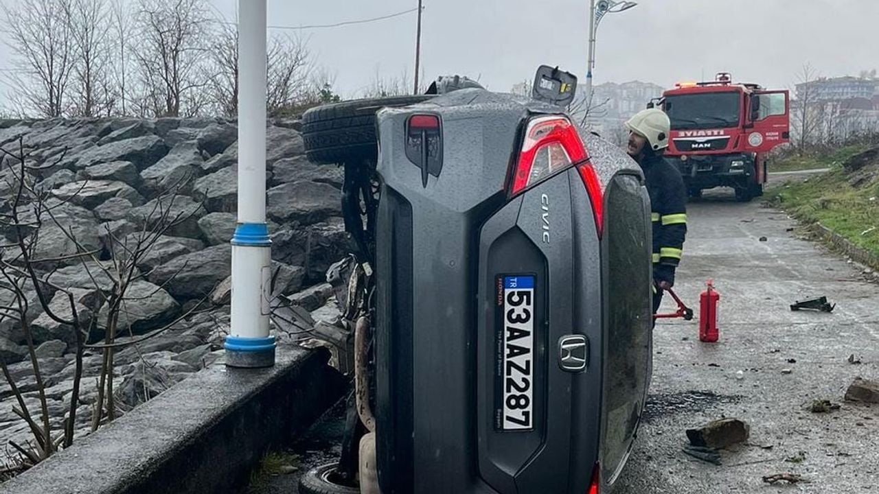 Kaza, saat 12.30 sıralarında Karadeniz Sahil Yolu'nun Pazar ilçesi Kız Kalesi mevkisinde meydana geldi. Artvin yönünden Rize yönüne giden B.S. yönetimindeki 53 AAZ 287 plakalı otomobil, yağış nedeniyle kayganlaşan yolda sürücüsünün kontrolü kaybetmesi sonucu kaldırımı aşıp, takla atarak yürüyüş yoluna devrildi. İhbar üzerine kaza yerine sağlık, itfaiye ve polis ekipleri sevk edildi. Hafif yaralanan sürücü B.S., ilk müdahalenin ardından ambulansla kaldırıldığı Kaçkar Devlet Hastanesi'nde tedaviye alındı.