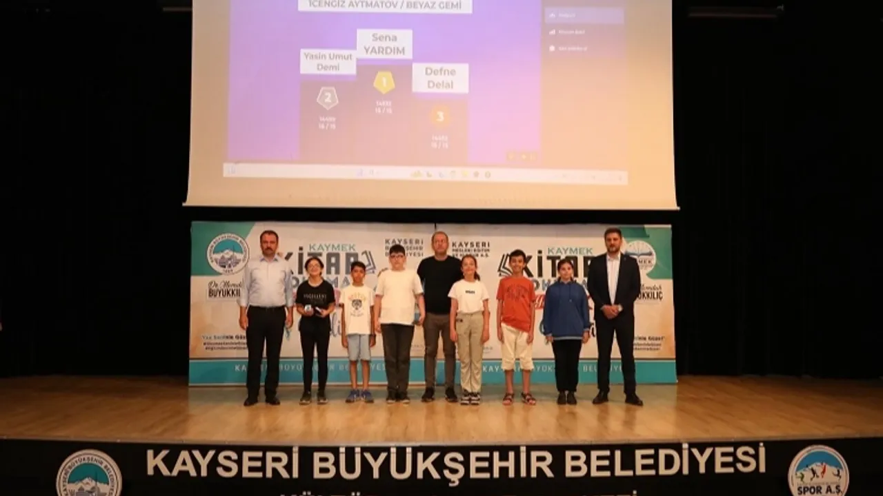 Büyükşehir Belediyesi KAYMEK’in heyecan ve rekabet dolu 4’üncü Kitap Okuma Yarışması’nın ortaokul kategorisinde Cengiz Aytmatov’un “Beyaz Gemi” isimli kitabı için birinci Sena Yıldırım, ikinci Yasin Umut Demirer, üçüncü Defne Delal Yılmaz olurken Burak Bilge, Yiğit Kağan Demir ve Zümra Çağlar mansiyon ödülü almaya hak kazandı.