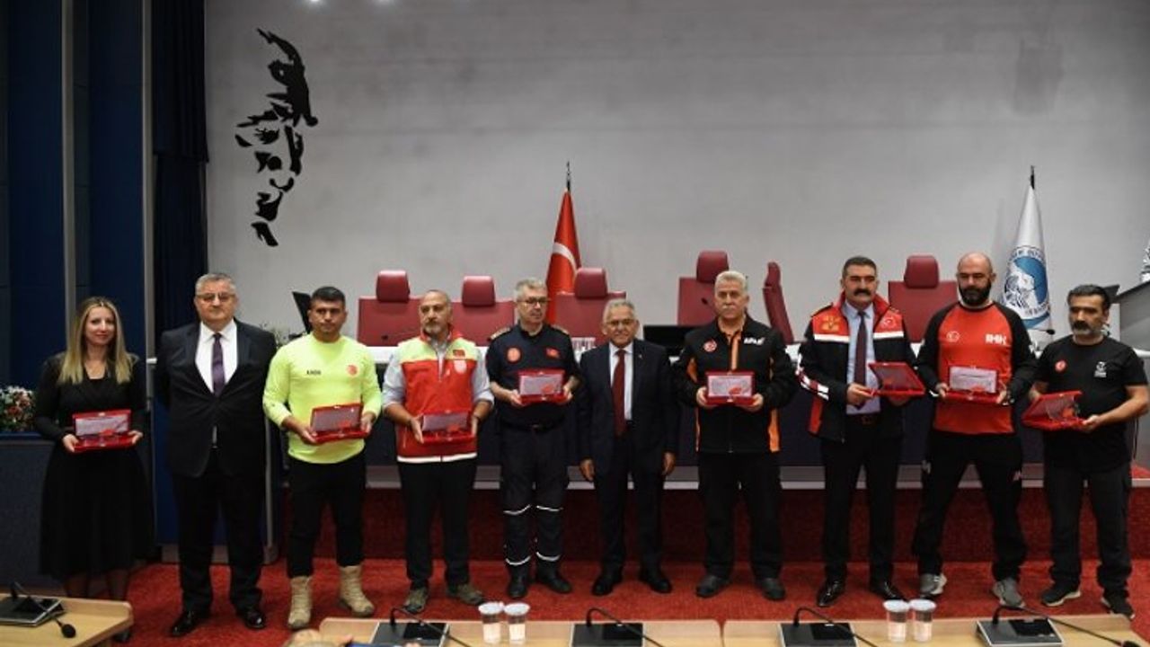 Konuşmaların ardından Başkan Büyükkılıç tarafından, Kayseri İtfaiyesi ve KASKİ’nin yanı sıra AFAD, OSB, ANDA, Türkuaz, İHH ve Yesevi sivil toplum kuruluşlarının isimsiz kahramanlarına özel hazırlanan plaketler takdim edildi. Büyükşehir Belediye Başkanı Dr. Memduh Büyükkılıç, günün anısına sivil toplum kuruluşları ile toplu hatıra fotoğrafı çektirdi.
