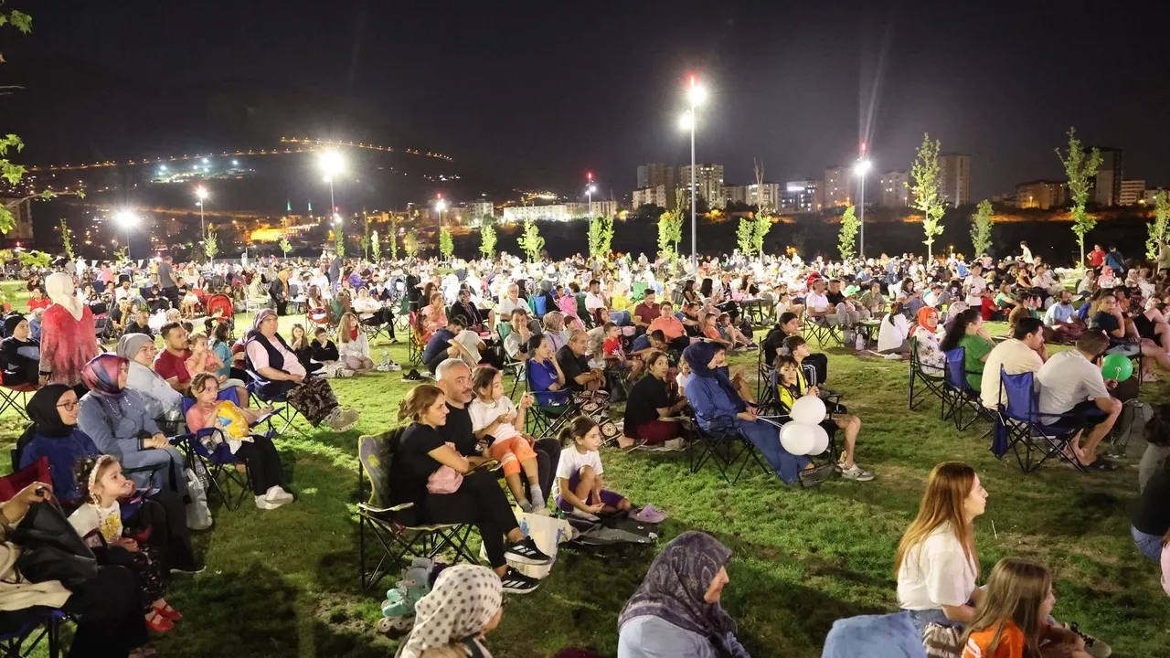 Kayseri Talas Millet Bahçesi’nde düzenlenen açık hava sinema gösterimi büyük ilgi gördü.KAYSERİ (İGFA) - Açıldığı günden bu yana her akşam onbinleri ağırlayan Kayseri Talas Millet Bahçesi, çeşitli kültür sanat etkinliklerine de sahne oluyor. Geçtiğimiz hafta Grup Şantiye konseri ile eğlenen vatandaşlar, bu hafta sonu da Yeşilçam’ın efsane filmlerinden Neşeli Günler ile keyifli vakit geçirdi. Talas Belediye Başkanı Mustafa Yalçın’ın da katıldığı etkinlikte büyükler kadar çocuklar da eğlendi.