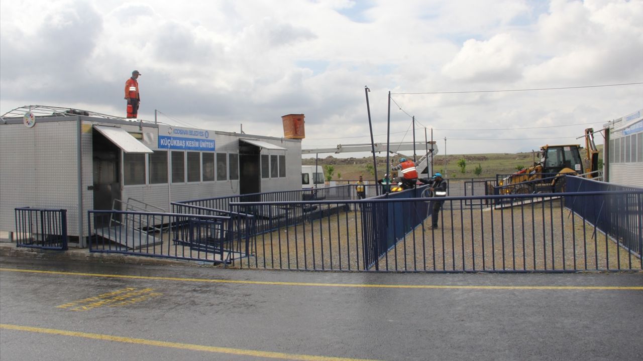 KAYSERİ (AA) - Kayseri'de Kocasinan Belediyesi ekipleri, Kurban Bayramı öncesi prova için 3 büyükbaş hayvanın kesimini gerçekleştirdi.