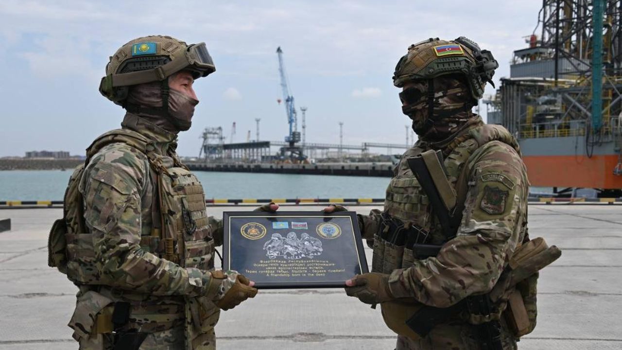 Hazar Denizi'nin Kazakistan kesiminde yapılan tatbikata, Kazakistan ve Azerbaycan'dan yaklaşık 300 asker katıldı.