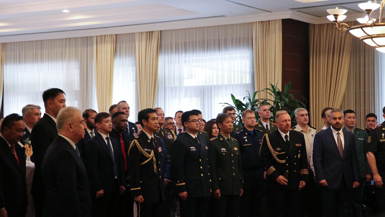 Türkiye'nin Astana Büyükelçiliği Askeri Ataşesi Şener Kimençe, Kazakistan Savunma Bakanlığı yetkilileri ve yabancı büyükelçiliklerden askeri ataşelerin de yer aldığı resepsiyon, İstiklal Marşı ile Kazakistan Milli Marşı'nın okunmasıyla başladı.
