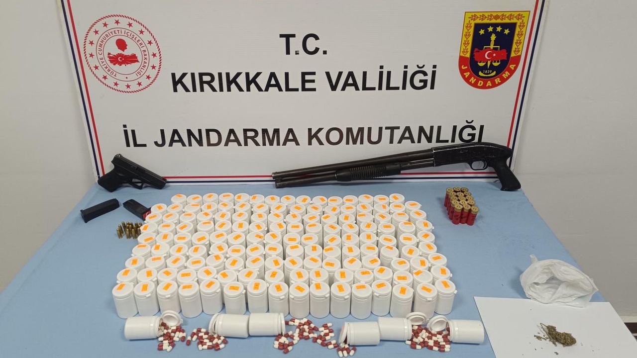 Burak CAN/KIRIKKALE, (DHA)- KIRIKKALE'nin Keskin ilçesinde uyuşturucu ticareti yaptığı tespit edilen şüphelinin ikametine yapılan operasyonda 8 bin 252 uyuşturucu hap, ruhsatsız tabanca ve ruhsatsız pompalı av tüfeği ele geçirildi. Gözaltına alınan M.İ. (52), çıkarıldığı mahkemece tutuklandı.