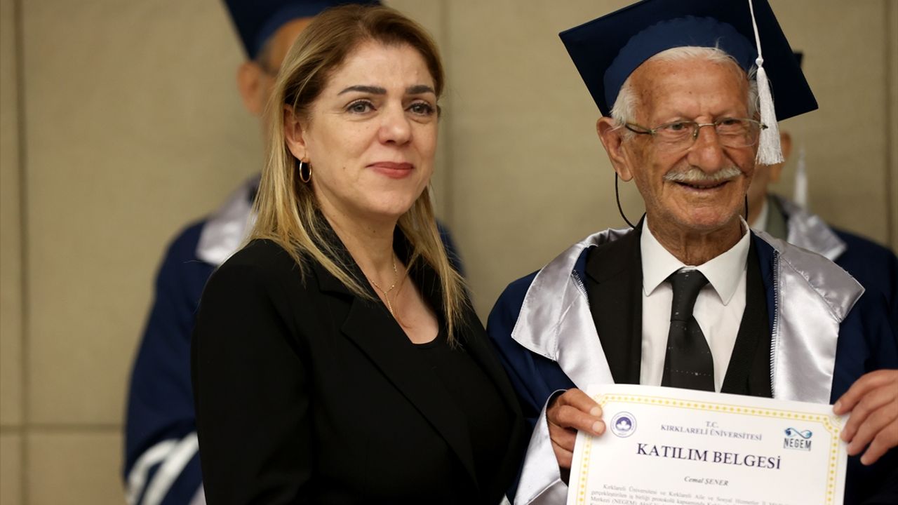 KIRKLARELİ (AA) - Kırklareli Üniversitesince yürütülen "Aktif Yaşlanma ve Çocukların Bilişsel Gelişimini Destekleme Projesi" kapsamında eğitimlerini tamamlayan 11 huzurevi sakini, mezuniyet töreninde kep attı.