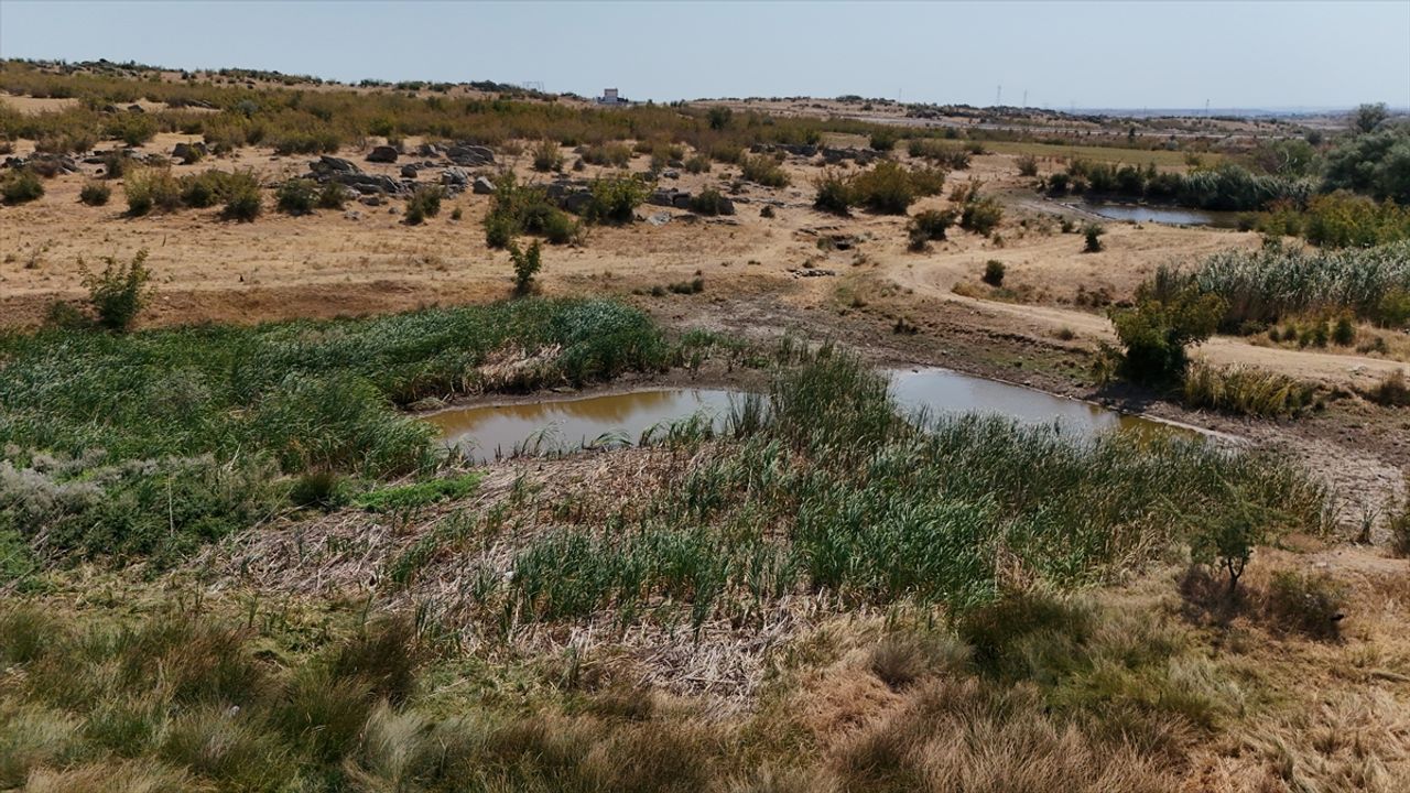 KIRKLARELİ (AA) - Kırklareli'ndeki Sazlık Göleti, kuraklık nedeniyle kuruma noktasına geldi.