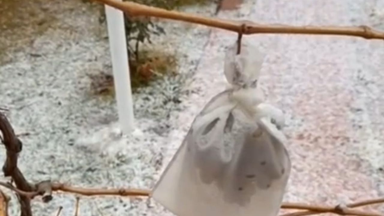 Merkeze bağlı Kervansaray Mahallesi'nde yaşayan Sait Yanık, yaz mevsiminde bahçesindeki asmalarda yetiştirdiği üzümleri toplamadı. Olgunlaşan üzümlerin etrafını poşetle muhafaza altına alan Yanık, yaklaşık 50 salkım üzümü dalında bıraktı. Kış aylarının sert geçtiği bölgede, üzüm salkımlarının büyük kısmı kar ve dondan etkilenmeden korundu. Ancak kargaların zarar vermesi nedeniyle sadece 3 salkım sağlam kaldı. Diğer yandan kar yağışının ardından bölgede hava sıcaklığı eksi 10 dereceye kadar düştü. Sait Yanık, kalan üzümleri kar yağışına rağmen bahçeye inerek dalından topladı. Sait Yanık, o anları cep telefonu kamerasıyla kaydetti. Görüntülerde; Yanık'ın üzümleri, poşetten çıkarıp dalından kopararak topladığı görüldü. (DHA)