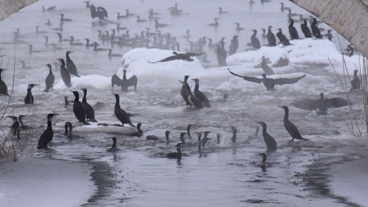 Son yılların en şiddetli kışını yaşayan Sivas'ın sürpriz ziyaretçileri, karabataklar oldu. Nehrin kent merkezinden geçen tarihi Eğri Köprü kısmına gelen binlerce karabatak, eksi 20'lere kadar düşen soğuk havaya karşın suda yüzerek, avlandı. Daha önce kuşların, soğuk havadan etkilenmeden nehir suyunda konaklamaları dikkat çekti. Karabatakların hem suda hem de gökyüzünde toplu halde uçuşları objektiflere yansıdı.