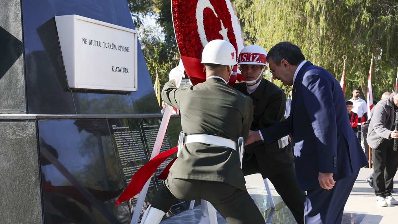 Lefkoşa Atatürk Anıtı önünde düzenlenen tören İstiklal Marşı ve saygı duruşu ile başladı.