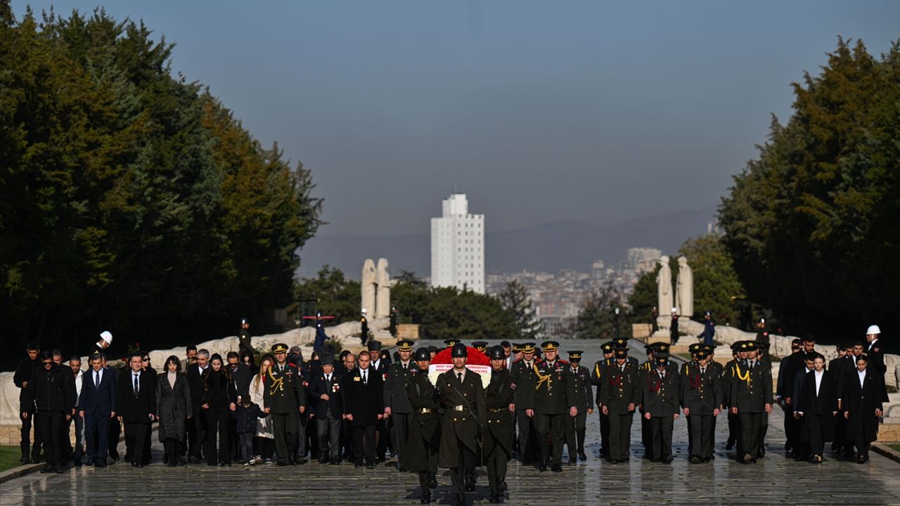 Beraberindeki heyetle Aslanlı Yol'dan yürüyerek Gazi Mustafa Kemal Atatürk'ün mozolesine gelen Korukoğlu, çelenk bırakarak saygı duruşunda bulundu.