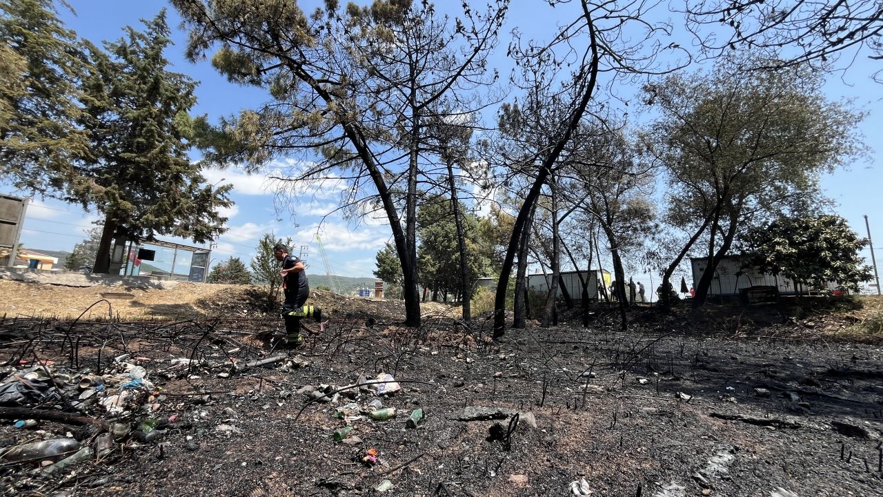 Deniz Mahallesi Ergenekon Caddesi'ndeki tır parkının yanındaki ağaçlık ve otluk alanda, henüz belirlenemeyen nedenle yangın çıktı.