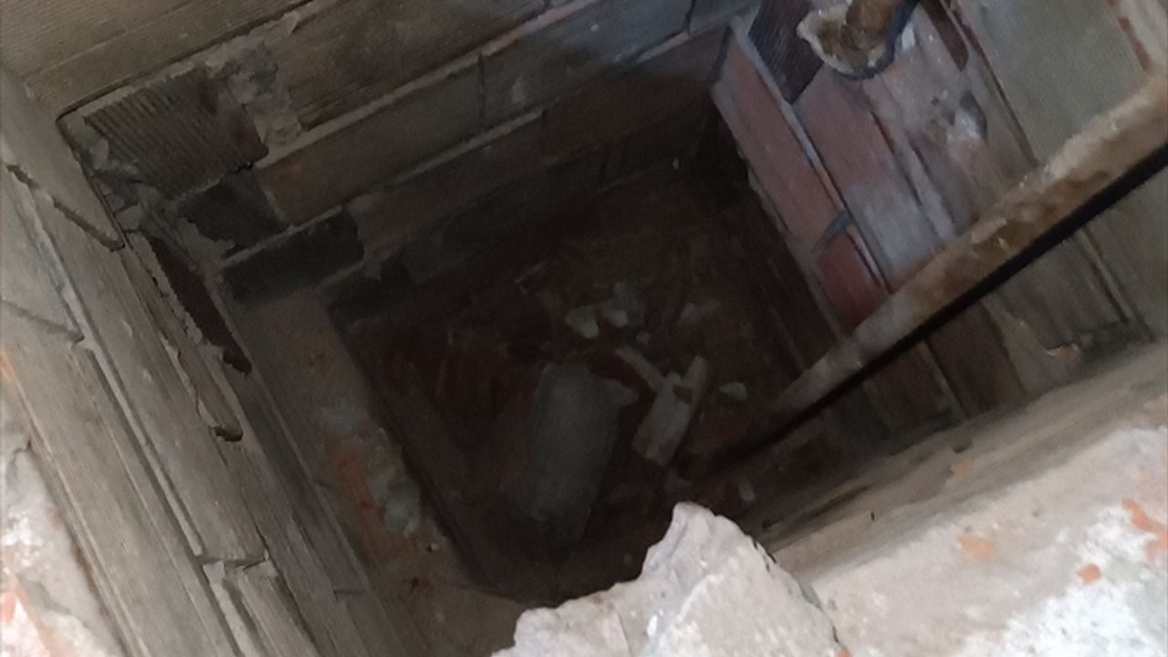 İhbar üzerine bölgeye gelen itfaiye ekipleri, havalandırma boşluğunda sıkışan kişiye ulaşmak için dairenin duvarında kontrollü bir kırma işlemi gerçekleştirdi.