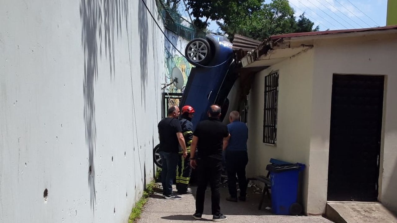 M.K. (53) idaresindeki 34 KNF 193 plakalı otomobil, Cami Mahallesi Karaaslan Caddesi'nde yol kenarındaki demir korkulukları aşarak istinat duvarından Namık Kemal İlkokulunun bahçesine düştü.
