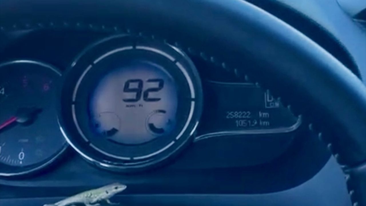 İşe gitmek için dün D-100 kara yolunda otomobiliyle seyir halinde olan Derya Karaaslan (37), direksiyon ile hız göstergesi panelinin arasında kertenkele olduğunu gördü.