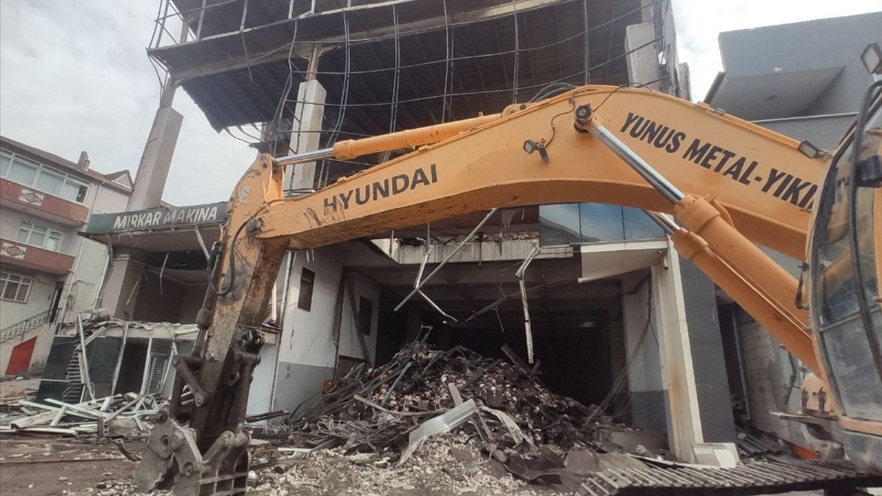 Mimar Sinan Mahallesi Mimar Sinan Caddesi'nde 8 Kasım'da 7 kişinin öldüğü, 6 kişinin yaralandığı yangının ardından fabrikada başlatılan yıkım çalışması devam ediyor.