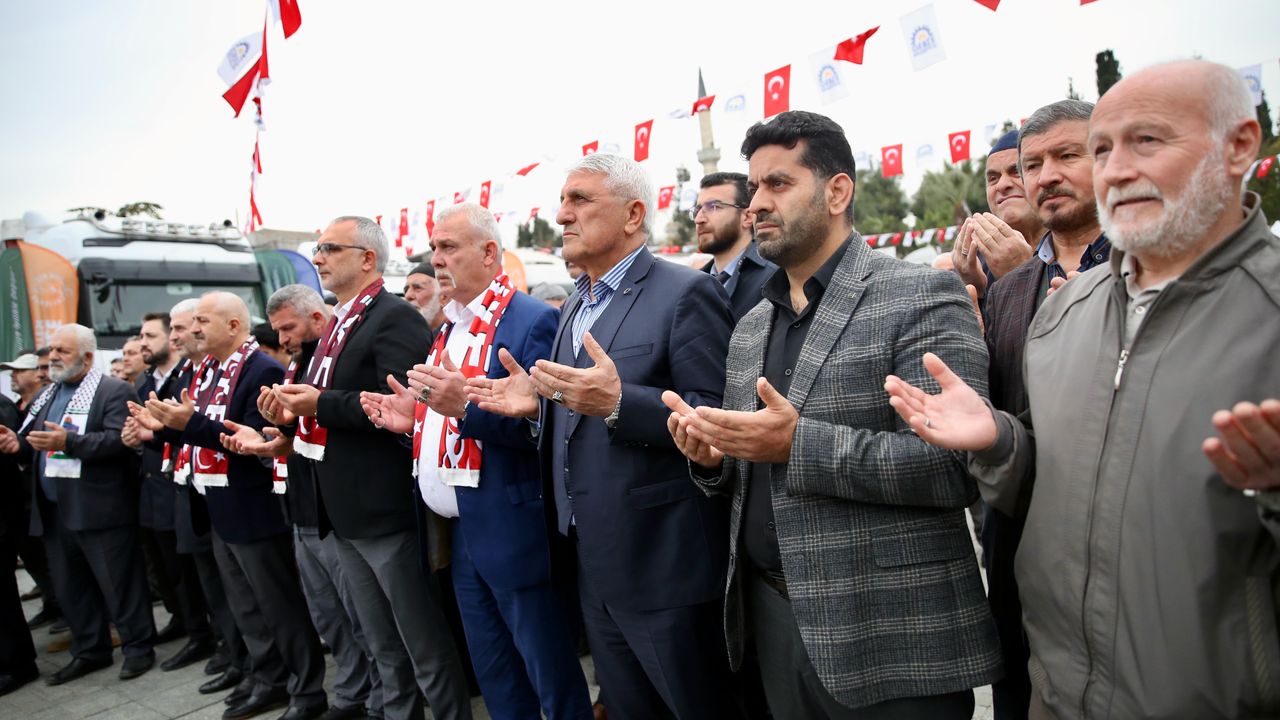 Burada konuşan Gebze Belediye Başkanı Zinnur Büyükgöz, yardım konvoyuna destek verenlere teşekkür etti.