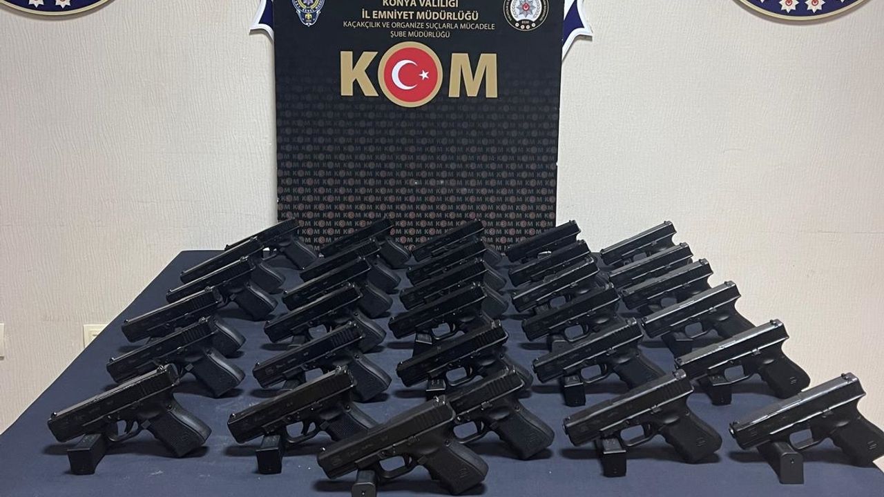 Konya ve İstanbul'da belirlenen adreslere yönelik düzenlenen operasyonda, 32 ruhsatsız tabanca ve şarjörü, 201 tabanca parçası ile tabanca mermileri ele geçirildi.