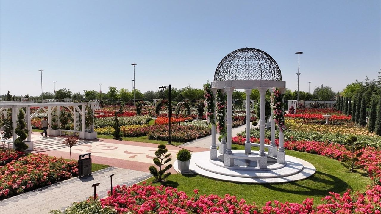 KONYA (AA) - Konya'da 190 türde 50 bin gülün yer aldığı Karatay Mevlana Gül Parkı ziyaretçilerini bekliyor.
