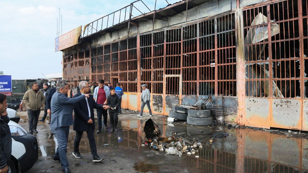 İtfaiye ekiplerinin çalışması sonucu söndürülen yangında, 6 iş yeri hasar gördü.