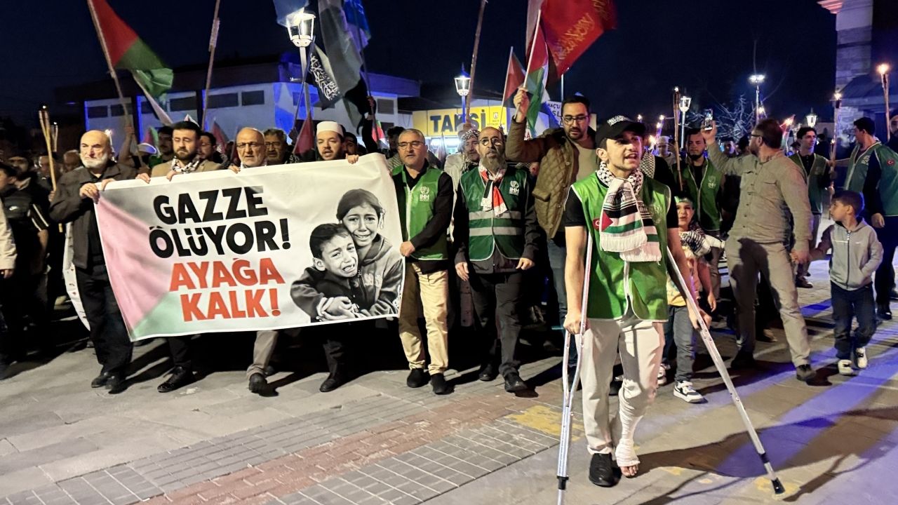 KONYA (AA) - Konya'da, İsrail'in Gazze'ye yönelik saldırılarına tepki göstermek amacıyla "Gazze Ölüyor Ayağa Kalk" yürüyüşü düzenlendi.