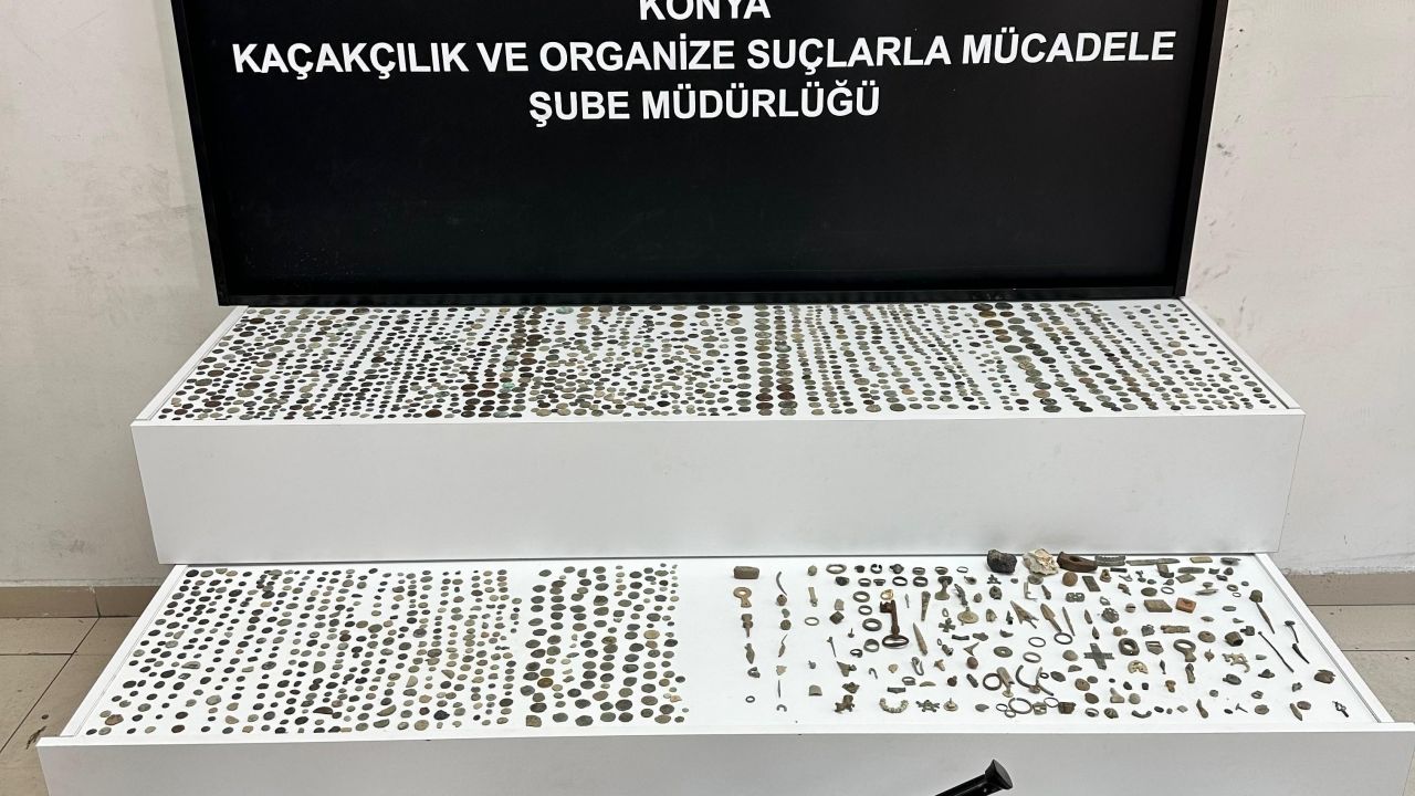 KONYA (AA) - Konya'da düzenlenen tarihi eser kaçakçılığı operasyonunda 1912 sikke ve 196 obje ele geçirildi.