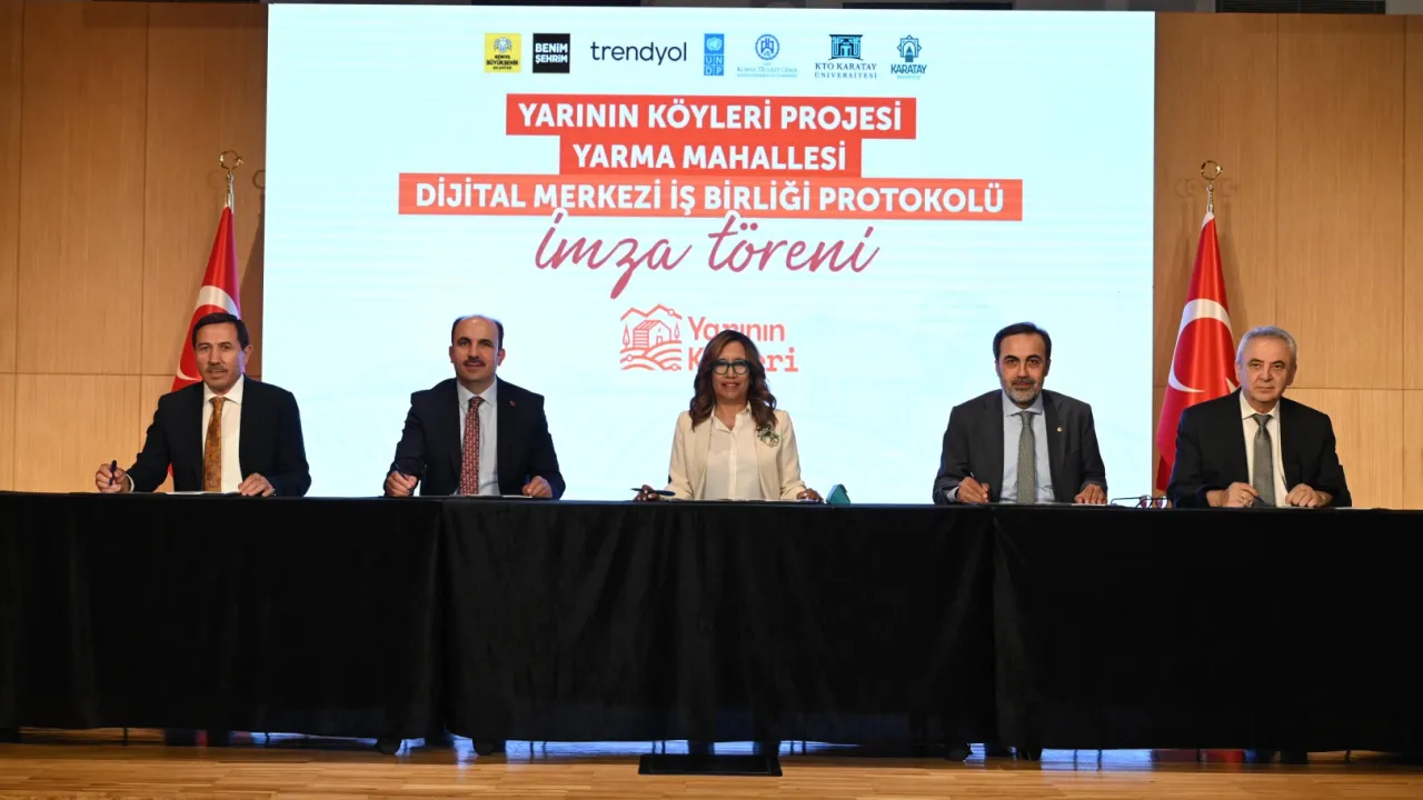 UNDP, Konya Büyükşehir Belediyesi, Karatay Belediyesi, KTO Karatay Üniversitesi ve Trendyol iş birliğiyle başlatılan “Yarının Köyleri Projesi”, Yarma Mahallesi’nde kurulacak Dijital Merkez ile start aldı. Protokol imza töreni, Konya Büyükşehir Belediyesi Taş Bina Kültür Sanat’ta gerçekleştirildi.