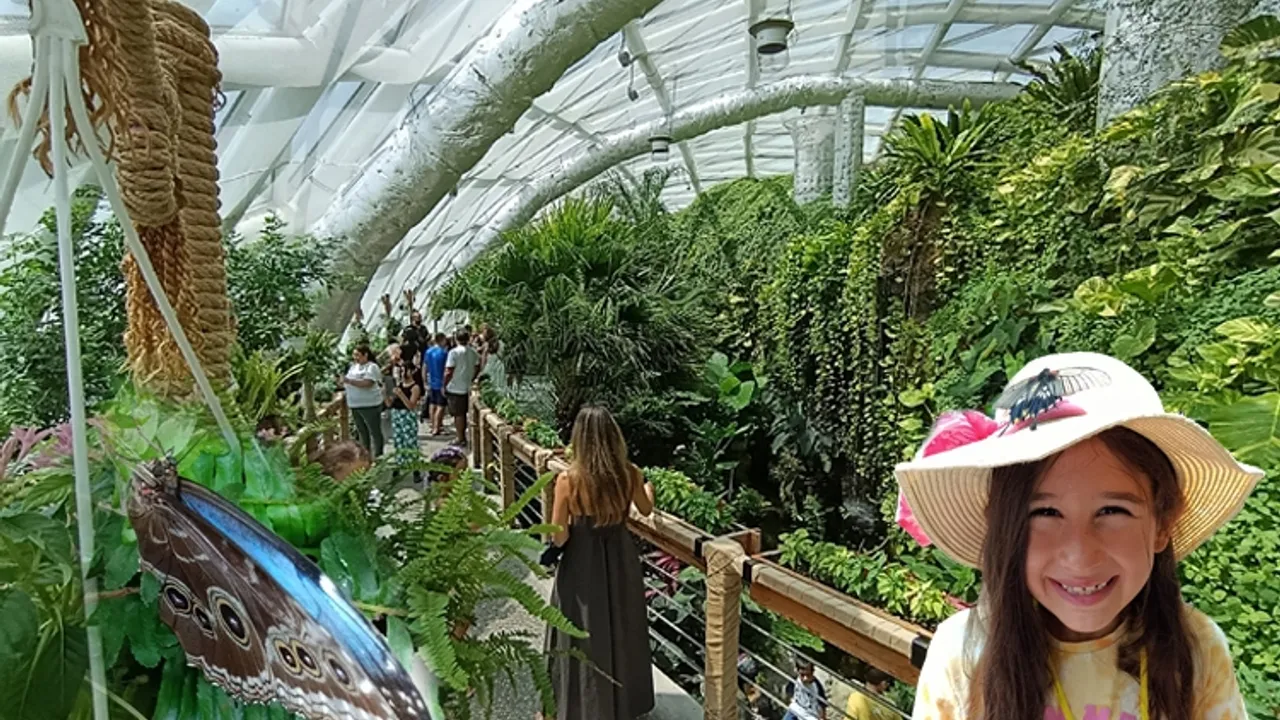 Eğlenceli ve eğitici deneyim sunan mekan, ziyaretçilere huzurlu bir atmosferde çeşitli bitki türlerini de keşfetme imkanı tanıyor. Ziyaret boyunca renkli kelebekler ve egzotik bitkiler, fotoğraf tutkunları için mükemmel bir arka plan oluşturuyor.