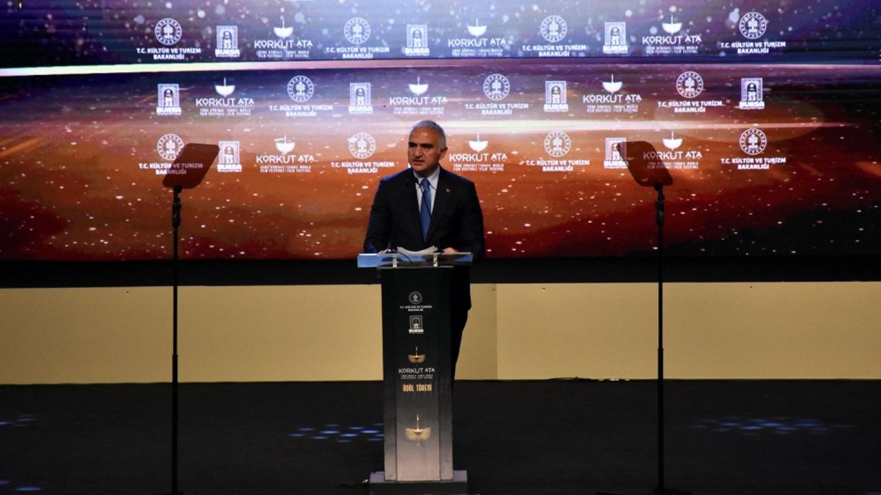 Türk Dünyası Kültür Başkenti Bursa'da Kültür ve Turizm Bakanlığının düzenlediği "2. Korkut Ata Türk Dünyası Film Festivali"nin ödül töreni gerçekleştirildi.Merinos Atatürk Kongre ve Kültür Merkezi'nde düzenlenen tören kapsamında Anadolu Ateşi dans topluluğunun gösterisi, katılımcıların beğenisini topladı.Kültür ve Turizm Bakanı Mehmet Nuri Ersoy, törende yaptığı konuşmada, festivalin fikir aşamasından beri ilk düşüncelerinin, sinema perdesi üzerinden kültür zenginliğini ortaya koymak, bunu mümkün olan en yüksek katılım, dolayısıyla çeşitlilik içinde gerçekleştirmek olduğunu söyledi.İlk yıl 13 ülkeden 42 sinema eserinin seyirciyle buluştuğunu anımsatan Ersoy, bu yıl 17 ülkeden 52 eserle çıtayı biraz daha yükselttiklerini kaydetti.Ersoy, katılımcı sayısının 148'e çıkmasının, Türkiye'den de 300'ü aşkın sinema sektör temsilcisinin iştirakinin daha ikinci yılda gelinen noktayı göstermesi açısından çok değerli olduğunu anlatarak, şöyle devam etti:"İnşallah bir sonraki festivalde bu rakamların da üstüne çıkacağız. Türk töresinin, gelenek ve göreneğinin bir abidesi olan Korkut Atamız, sözüne kopuzu yaren eder, öyle konuşurdu. Boy boylar, soy soylardı. Sanat ve zanaat, bilgenin dili ve eseri olduğunda en değerli yapıtlar ortaya çıkar, en geniş kitleye ulaşır, gönüllerde ve zihinlerde yer eder. Korkut Ata'nın kopuz çalmaya başladığında rüzgarın durduğu, dağların yerinden doğrulduğu, kuşların uçmayıp havada kaldığı ve suların akmaz olduğu menkıbesi, bu hususta halkımızın yaptığı eşsiz bir betimlemedir. Bu betimleme aslen Korkut Ata'nın manevi mertebesini resmetse de insanla birlikte bütün tabiatın onun söylediklerine kulak vermesi bana evrensellik olgusunu da çağrıştırır. Üstelik zaman, mekan ve olaylar değişse de Dede Korkut'un beslendiği değerlerin değişmemesi, evrenselliğin en doğru tanımını bizlere göstermektedir."Evrenselliğin özünden, değerlerinden kopmak olmadığını vurgulayan Ersoy, "Aksine onlara bağlı kalabilmektir. Farklılığınla evrenselliğe erişiyorsan değerlisindir. Herkes gibi olmaktan ziyade herkese örnek ve öncü olmak esastır. Unutmayalım, ağacın kökü toprağın derinine ne kadar iniyor, ne denli geniş alana yayılıyorsa boyu ve görkemi o kadar büyük, dallarının gölgesi o denli kapsayıcı olur." diye konuştu.