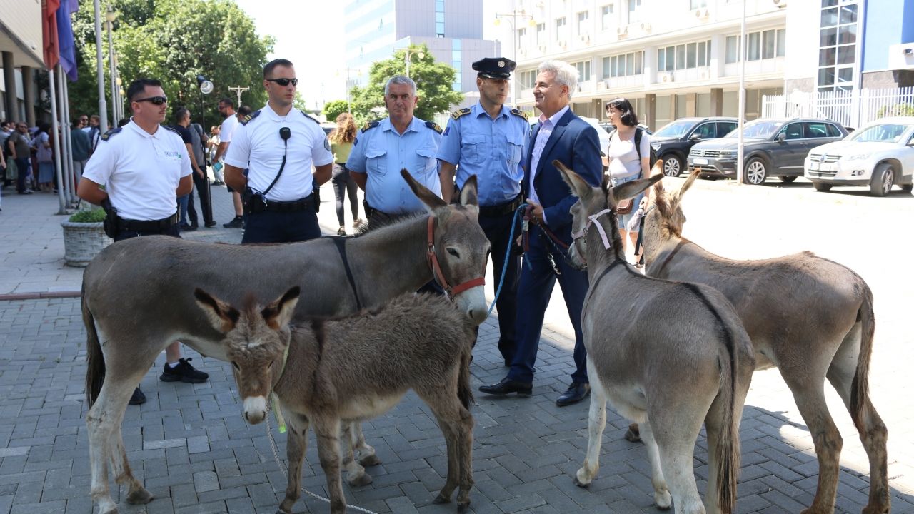 Öte yandan, Kosovalı aktivist Arianit Koci, uzlaşıya varamayan siyasetçileri protesto etmek için meclis binasının önüne 4 eşek getirdi.