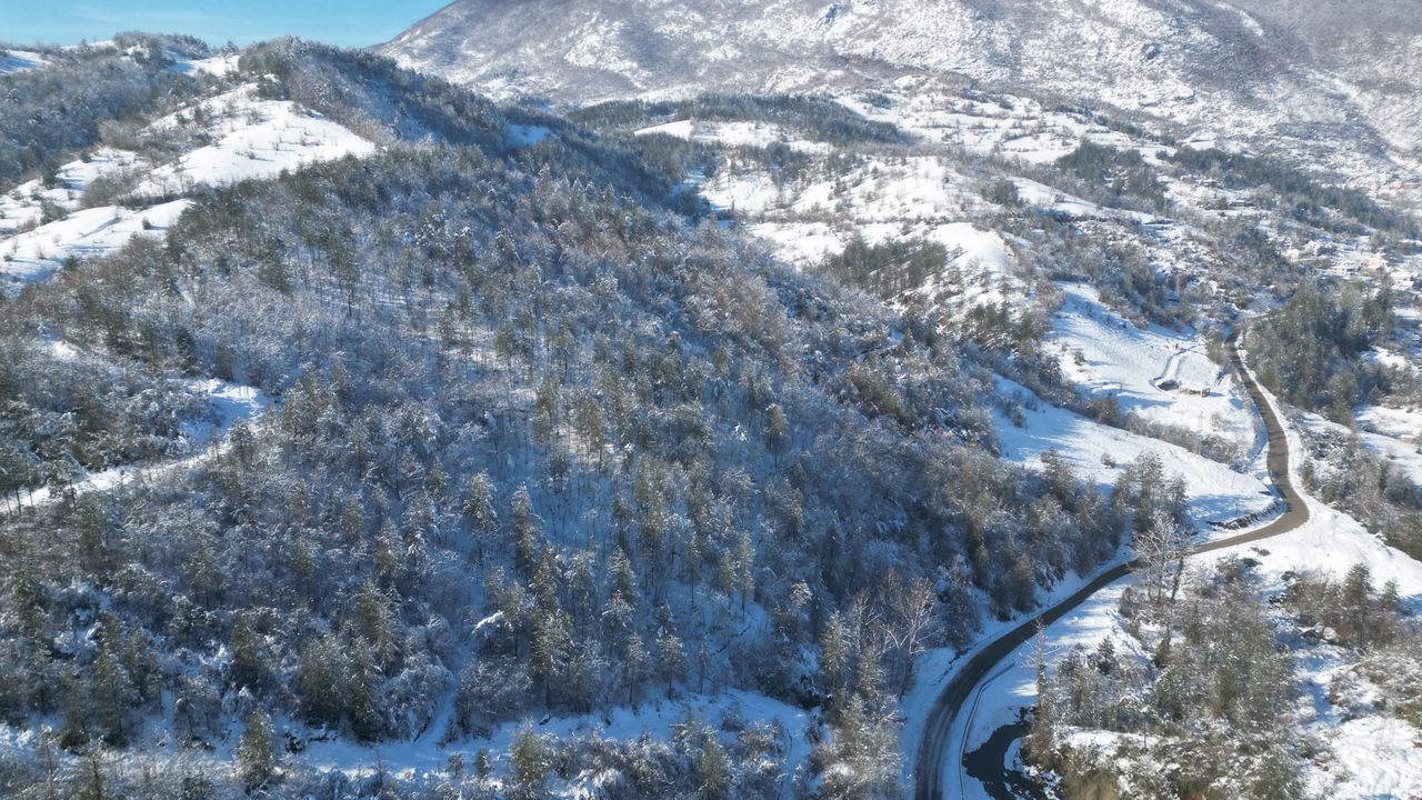 Korunan Alanlar Ağı Parkları (PAN Parks) sertifikası alarak, Avrupa'nın özel 13 noktasından 1'i seçilen Küre Dağları Milli Parkı'nda kar etkili oldu. Parkın Bartın'ın Ulus ilçesindeki bölümlerinde 1300 rakımlı alanlarında kar kalınlığı 2 metreye ulaştı. Her mevsim ayrı güzelliğe bürünen parkta 6 gün devam eden kar yağışının ardından güneş yeniden kendini gösterdi. Kış mevsiminin tüm güzelliklerini barındıran milli parkta güzel kar manzarası oluştu. Milli parkın eteklerinde bulunan beyaz örtüyle kaplanan Drahna Vadisi'ndeki Ulukaya, Alıçlı, Çıraklar, Köklü, Çamdibi, Kozanlı, Aşağıdere, Yukarıdere köyleri ve dağlardaki kar manzarası dronla görüntülendi. (DHA)