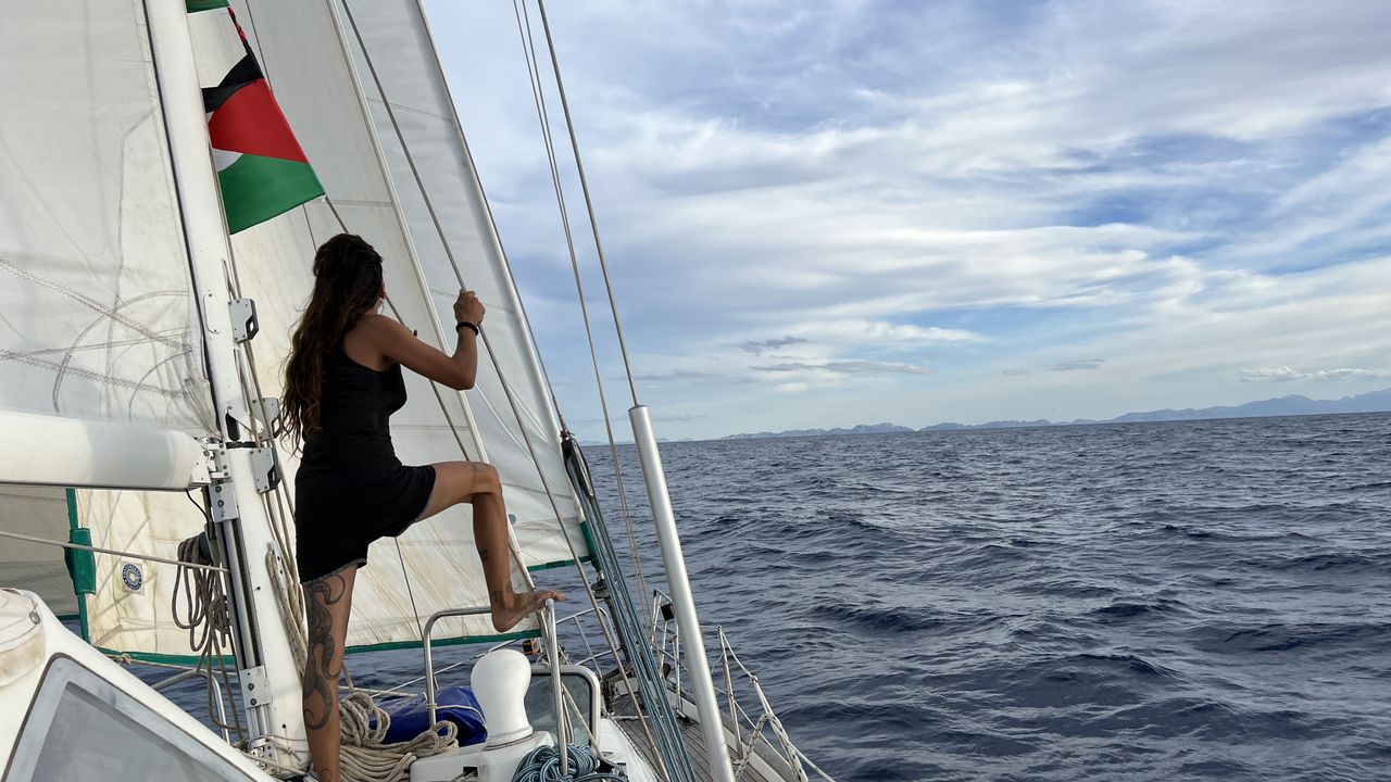 Filistin bayraklarıyla donatılan teknede Gazze yolculuğuna devam eden aktivistler, günlük hayatlarına deniz üstünde devam ederken, filodaki diğer teknelerle telsiz yoluyla iletişim kuruyor.