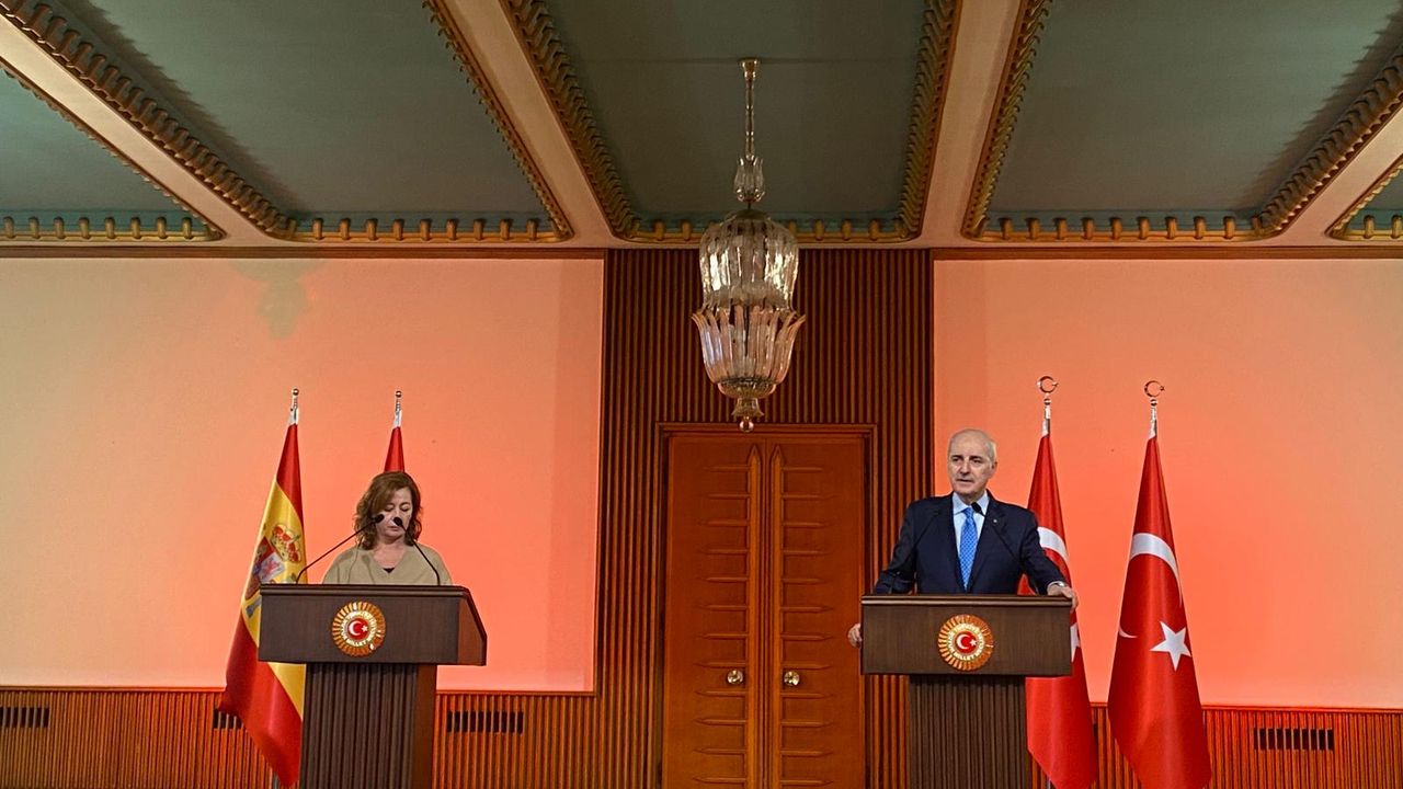 TBMM Başkanı Numan Kurtulmuş, İspanya Temsilciler Meclisi Başkanı Francina Armengol Socias ile Meclis'teki makamında bir araya geldi. Basına kapalı gerçekleşen görüşme sonrasında Kurtulmuş ve Socias, ortak basın toplantısı yaptı. Kurtulmuş, Socias ve heyetini TBMM'de ağırlamaktan memnuniyet duyduğunu söyleyerek, 'İki ülke arasında özellikle savunma sanayi, enerji, yenilenebilir enerji, denizcilik, turizm, eğitim, kültür sektörlerinde güçlü ilişkiler mevcuttur ve bu alanlardaki ilişkileri ileriye taşımak için büyük bir potansiyelin var olduğunu görüşmelerimizde gördük. Özellikle Türk Hava Yolları'nın (THY) İspanya'nın hemen hemen her şehrine gerçekleştirdiği uçuşların Türkiye ve İspanya'yı birbirine yanaştıran önemli faktörlerden biri olduğunun altını çizmek isterim. Aynı şekilde İspanya'nın Endülüsler'den kalma olan o büyük kültürel mirasların da iki ülkeyi, iki halkı birbirine yakınlaştıran önemli bir tarihi birikim olduğunu ifade etmek isterim' dedi.