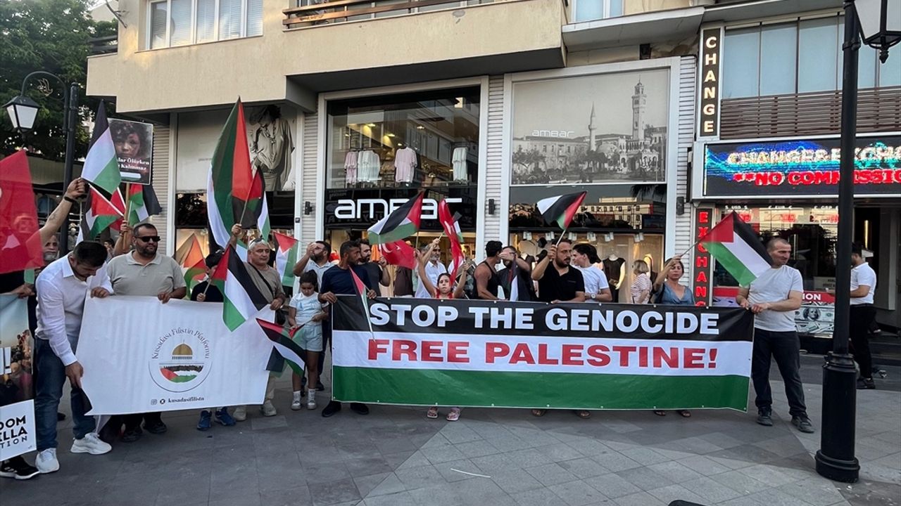 AYDIN (AA) - Aydın'ın Kuşadası ilçesinde İsrail'in Gazze'ye yönelik saldırıları protesto edildi.