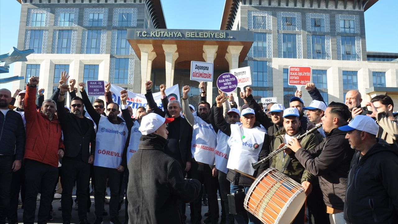 Kütahya Belediyesi hizmet binası önünde toplanan işçilere Hizmet-İş Sendikası Genel Başkan Vekili Halil Özdemir de destek verdi.