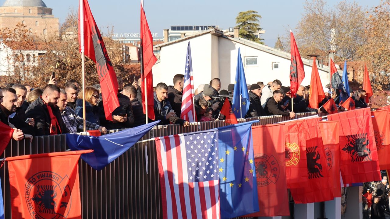 ÜSKÜP (AA) - Hollanda'nın Lahey kentinde tutuklu yargılanan eski Kosova Cumhurbaşkanı Hashim Thaçi'nin de aralarında olduğu Kosova Kurtuluş Ordusunun (UÇK) eski komutanları için Kuzey Makedonya'nın başkenti Üsküp'te destek gösterisi düzenlendi.