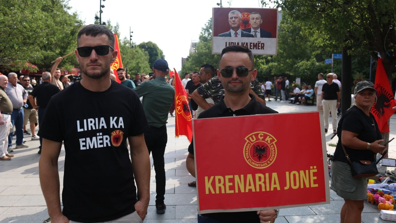 Şehir merkezindeki meydanları dolduran binlerce kişi, UÇK Savaş Gazileri Derneğince düzenlenen gösteride Lahey'de tutuklu yargılanan UÇK komutanları eski Kosova Cumhurbaşkanı Thaçi, Jakup Krasniqi, Kadri Veseli ve Rexhep Selimi'ye destek verdi.