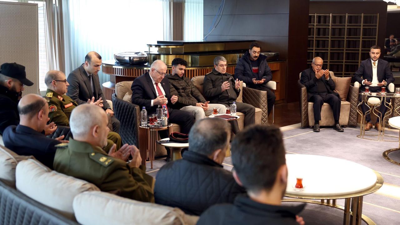 Milli Savunma Bakanı Yaşar Güler, uçak kazasında şehit olan Libya askeri heyetinin yakınlarına Ankara'da bulundukları otelde taziye ziyaretinde bulundu. Milli Savunma Bakanlığı'ndan yapılan açıklamada, 'Düşen uçakta bulunan Libya askeri heyetinin naaşlarını almak üzere Libyalı askeri yetkililer ve şehitlerimizin aileleri Ankara'ya geldi. Milli Savunma Bakanı Yaşar Güler ile beraberindeki Genelkurmay Başkanı Orgeneral Selçuk Bayraktaroğlu da Libya'dan gelen görevlilere ve şehitlerimizin ailelerine bulundukları otelde taziye ziyaretinde bulundu. Bakan Yaşar Güler ve Orgeneral Selçuk Bayraktaroğlu, yaşanan elim kazadan dolayı üzüntülerini dile getirerek hem ailelerine hem de dost ve kardeş Libya halkına başsağlığı temennisinde bulundu. Taziye ziyaretinde, kaybettiğimiz Libya askeri heyeti için Kur'an-ı Kerim okunarak dualar edildi' denildi. (DHA)