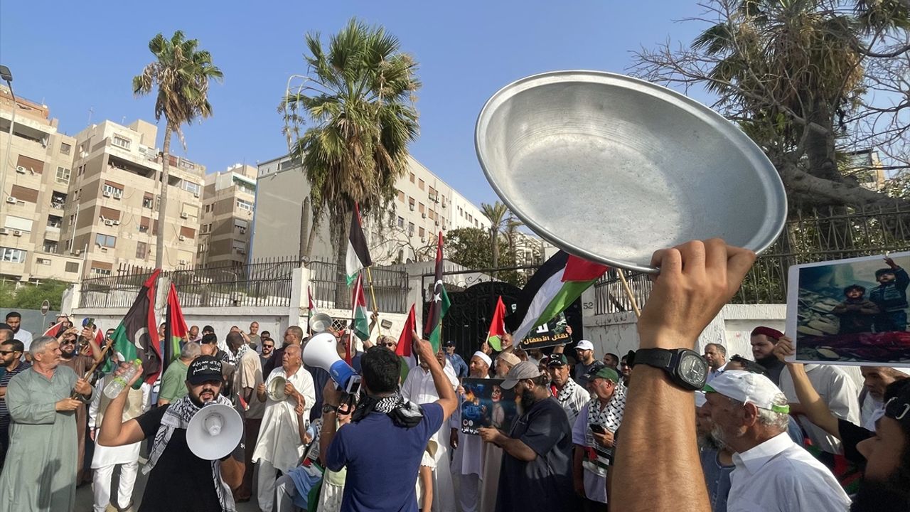 TRABLUS (AA) - Libyalılar, insani yardım malzemelerinin Refah Sınır Kapısı'ndan Gazze'ye derhal girmesi talebiyle başkent Trablus'taki Mısır'ın Trablus Büyükelçiliği önünde gösteri düzenlendi.