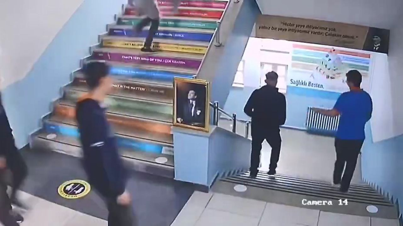 Dilovası ilçesindeki GEBKİM Mesleki ve Teknik Anadolu Lisesi'nde bir öğretmen, öğrencilerin Türkiye Cumhuriyeti'nin kurucusu Mustafa Kemal Atatürk'e yönelik hassasiyetini ölçmek amacıyla sosyal deney gerçekleştirdi. Deney kapsamında Atatürk portresi okul içinde merdivenin yanına yatay ve duvara yaslı şekilde yere bırakıldı. Durumu fark eden öğrencilerden biri portreyi düzeltti, diğeri portreyi yerden kaldırdı. Başka bir öğrenci ise portreyi yerden alarak daha yükseğe koydu. Öğrencilerin gösterdiği duyarlılık ve hassasiyet, okulun güvenlik kamerasına yansıdı. (DHA)