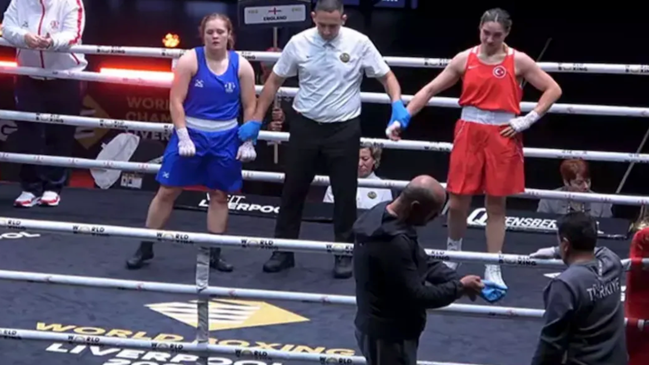 İngiltere'de devam eden Dünya Boks Şampiyonası'nda milli sporcular Busenaz Sürmeneli ve Elif Güneri, çeyrek finalde organizasyona veda etti.Liverpool şehrindeki M&S Bank Arena'da düzenlenen Dünya Şampiyonası'nın akşam seansında kadınlar 65 kiloda Busenaz, Kazakistan'dan Aida Abikeyeva ile karşılaştı.Bir önceki dünya şampiyonasında 66 kiloda altın madalya kazanan Busenaz ile 63 kiloda şampiyon olan Abikeyeva, Liverpool'da 65 kiloda çeyrek finalde rakip oldu.Rakibine 5-0 yenilen son 3 dünya şampiyonu Busenaz, bu sefer şampiyonaya çeyrek finalde veda etmek zorunda kaldı.Ringe 80 kiloda çıkan milli sporcu Elif Güneri ise ev sahibi İngiltere'den Emily Asquith ile karşı karşıya geldi. Elif, rakibine 5-0 yenilerek elendi.