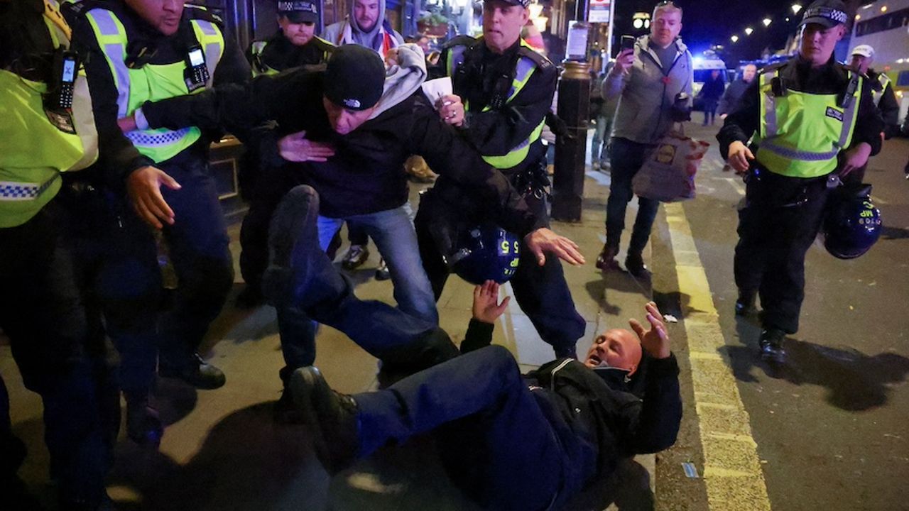 Londra Metropolitan Polisi, kentte yapılan Filistin'le dayanışma yürüyüşü ve aşırı sağcıların katıldığı Ateşkes Günü törenleri kapsamında toplamda 126 kişinin gözaltına alındığını açıkladı.Londra Metropolitan Polis Teşkilatı Müdür Yardımcısı Matt Twist, yaptığı yazılı açıklamada Londra'da iki farklı gerekçeyle toplulukların bir araya geldiği belirterek, "Sağcı grupların polise yönelik aşırı şiddeti olağan dışı ve derinden endişe vericiydi." ifadelerini kullandı.Aşırı sağcı grubun askeri anıtları koruma bahanesiyle sabah saatlerinde sokaklara indiğini kaydeden Twist, "Bir kısmı zaten sarhoştu, agresifti ve kavga etmek için fırsat arıyordu." değerlendirmesini yaptı.Twist, Birinci Dünya Savaşı'nda müttefikler ile Almanya arasında yapılan ateşkesin yıl dönümü törenlerinin gerçekleştirildiği Cenotaph anıtı çevresinde aşırı sağcılarla polis arasında gerginlik yaşandığını belirterek sağcı grubun polise, "Siz artık İngiliz değilsiniz." dediğini söyledi.Çoğunlukla futbol holiganlarından oluşan grubun gün boyu kendilerini Filistin'e destek yürüyüşüne katılanlarla karşı karşıya getirmemeye çalışan polise hakaret ve tehditler savurduğunu vurgulayan Twist, "Bu gruplardakilerin çoğu durdurulup arandı ve silah, cop, muşta gibi silahlar ile A sınıfı uyuşturucular (Kokain, eroin ve ecstasy vb.) ele geçirildi." açıklamasını yaptı.Twist, polisle sağcılar arasındaki Cenotaph çevresinde yaşanan gerginlik esnasında 9 polisin yaralandığını, iki polisin ise dirseğinde kırık ve kalça çıkığı nedeniyle hastaneye kaldırıldığını bildirdi.