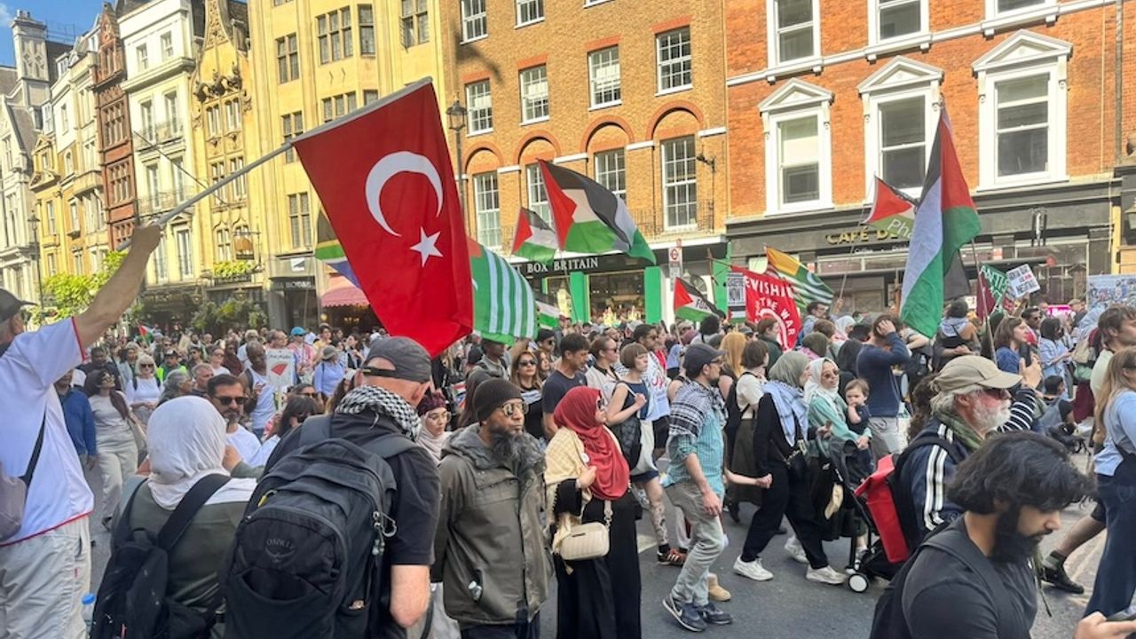 Salih Gaygusuz/Downing Street-İngiltere'nin başkenti Londra'da yüz binlerce kişi, Filistinlilerin zorunlu göçe tabi tutulduğu Nekbe'nin (Büyük Felaket) 77. yılında İsrail'in Gazze'deki soykırımına son verilmesi çağrısıyla yürüdü.Başkentin birçok noktasında toplandıktan sonra ana yürüyüş için Waterloo Tren İstasyonu yakınlarında bir araya gelen yüz binlerce gösterici, Nekbe'nin 77. yılında Başbakanlık Ofisi 10 Numara'nın bulunduğu Downing Sokağı'na doğru yürüyüş başlattı.Ellerinde Filistin bayrakları taşıyan ve kefiye giyen göstericiler, "Gazze'de soykırımı durdurun", "Özgür Filistin" ve "İsrail terör devleti" şeklinde sloganlar attı.Protestocular, yürüyüş güzergahı boyunca İsrail'in Gazze Şeridi'ne yönelik kuşatmasına ve 2 milyondan fazla Filistinlinin kasıtlı olarak açlığa mahkum edilmesine son verilmesini talep etti.Filistin destekçisi göstericiler, İngiltere'nin İsrail'e siyasi, diplomatik ve ekonomik destek verdiğini belirterek, Gazze'deki soykırımın suç ortağı olduğu gerekçesiyle İngiltere'ye de tepki gösterdi.Yürüyüşe, ünlü The Crown dizisi oyuncusu Khalid Abdalla, ünlü İngiliz aktris Juliet Stevenson ve eski bir ABD askeri ve diplomatı Ann Wright de katılarak destek verdi.
