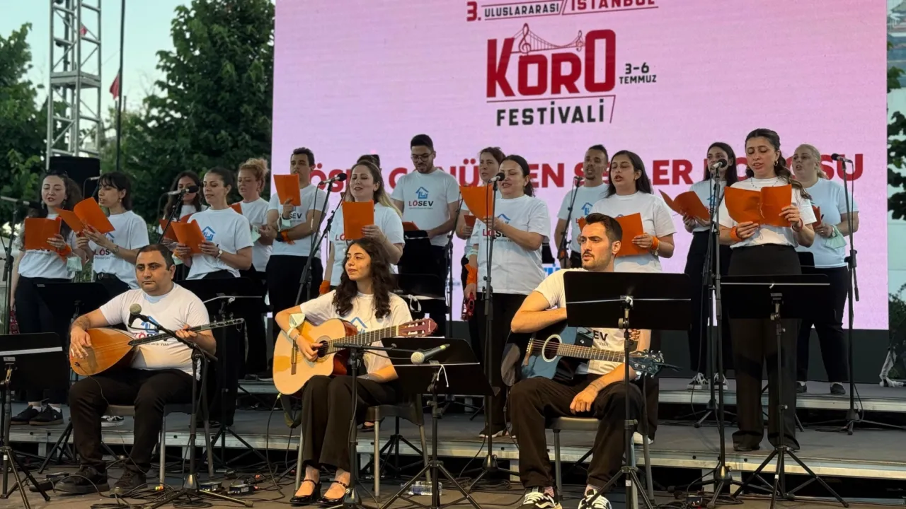 LÖSEV, Lösemili Çocuklara ve kanser hastalarına umut olurken, sağlıklı ve mutlu yarınlar için el ele çalıştığı gönüllülerinden oluşan LÖSEV Gönüllü Korosu ile İstanbul Büyükşehir Belediyesi'nin bu yıl üçüncüsünü düzenlediği Korolar Festivali’nde sahne alarak izleyicilere unutulmaz anlar yaşattı.İSTANBUL (İGFA) - İstanbul'da Beşiktaş Meydanı'nda gerçekleşen programda LÖSEV Gönüllü Korosu’nun yanı sıra 30 farklı koro sahne aldı. Bu özel etkinlikte tamamen gönüllülerden oluşan İstanbul Avrupa LÖSEV Gönüllü Korosu üyeleri giydikleri LÖSEV tişörtleriyle güçlü mesaj vererek farkındalık oluşturdu.