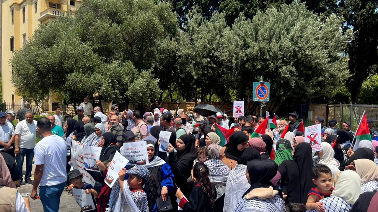 Lübnan'daki Filistinli Kuruluşlar Forumunun düzenlediği protestoya Sayda ve Beyrut’taki Filistinli mülteci kamplarından gelen Filistinliler katılım gösterdi.