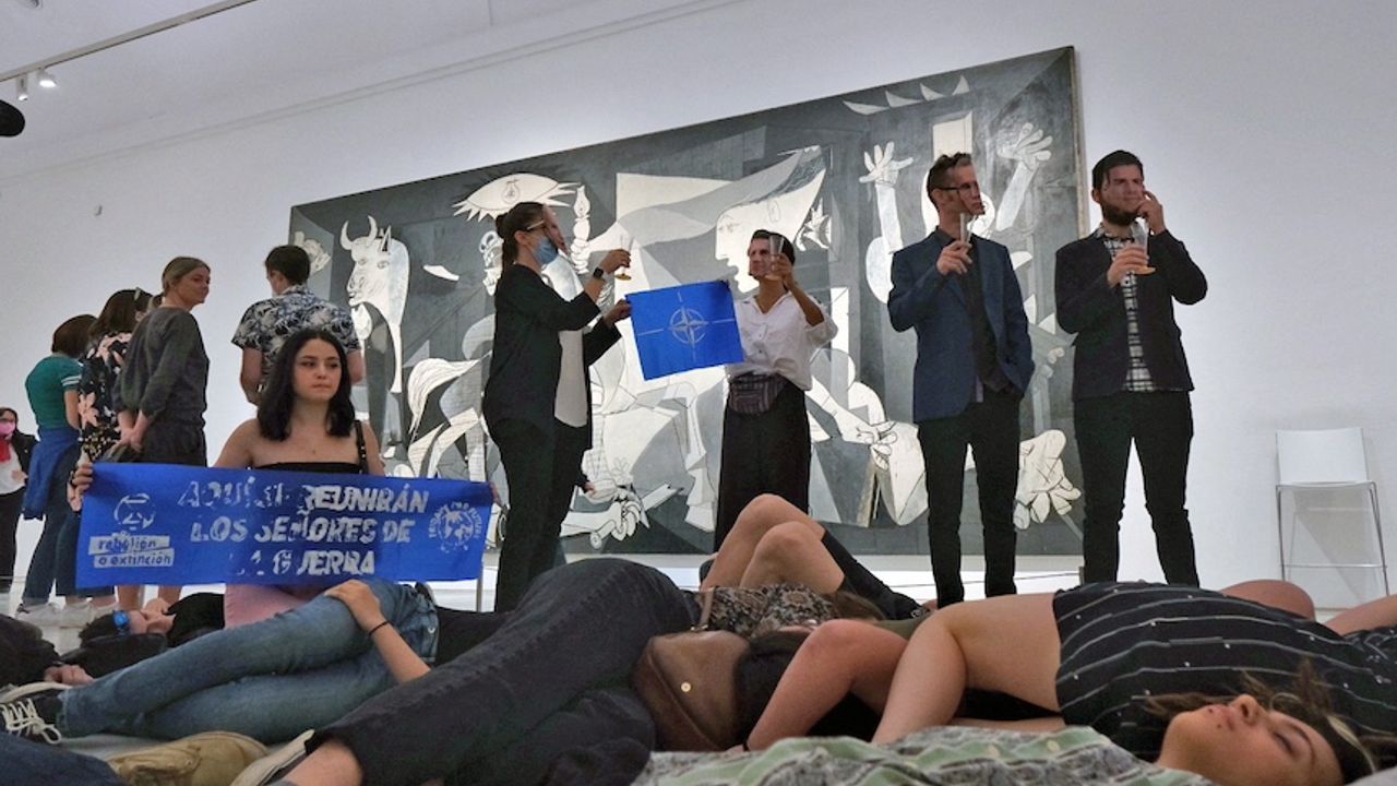Grup tarafından sosyal medyada yapılan açıklamada, "Siyonist İsrail 4 ay önce sistematik bir şekilde Gazze halkını bombalamaya başladı. Bu yüzden Filistin yanlısı aktivistlerden oluşan bir grup Reina Sofia Müzesi'nde Guernica tablosu önünde eylem yaptı. İspanya hükümetinden, İsrail ile diplomatik ilişkileri kesmesi, siyonist devlete silah alım ve satışını durdurması istendi." ifadesine yer verildi.İspanya İç Savaşı'nın sembolik mekanlarından Guernica kasabası diktatör General Francisco Franco tarafından yönetilen Milliyetçi Güçler'in talimatıyla 26 Nisan 1937'de Alman ve İtalyan uçakları tarafından bombalanmıştı.