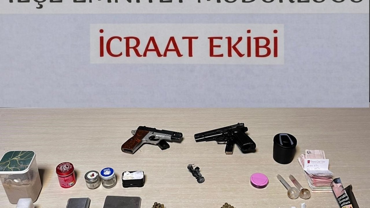Çalışmaların devamında şüphelilere ait evler ile 'zula evi' olarak kullanılan adrese operasyon düzenlendi. Operasyonda S.G. (52) yakalandı. S.G. (27)'nin ikametinde yapılan aramada 1 ruhsatsız tabanca, 1 kurusıkı tabanca, 1,6 gram uyuşturucu, 62 fişek ve 7 kurusıkı mermisi ele geçirildi.