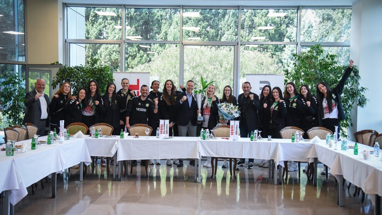 Manisa Büyükşehir Belediyespor, geçen hafta Alanya'da düzenlenen Play-Off finallerinin ardından kupayı Ferdi Zeyrek'in resminin yer aldığı pankartla almıştı. Manisa ekibi Büyükşehir Belediye Başkanı Besim Dutlulu ve sponsorlarını da ziyaret etti.