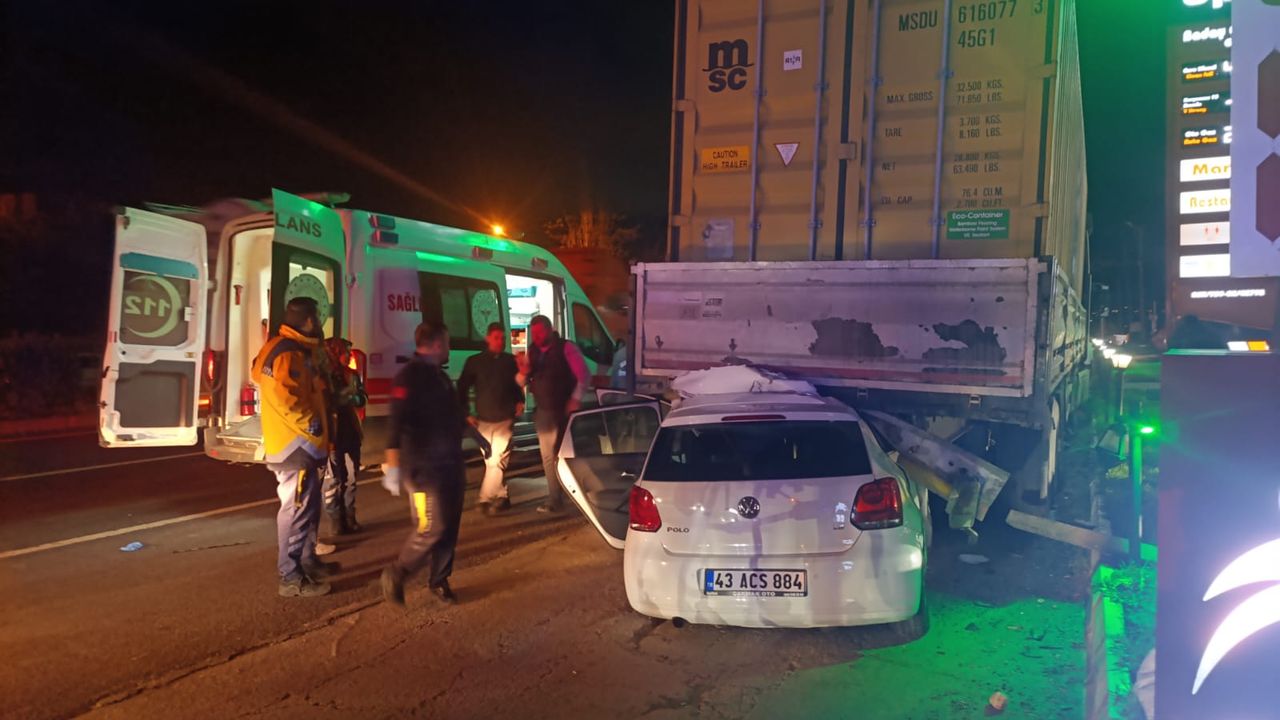 Doğan ÇİZMECİ/TURGUTLU (Manisa), (DHA) - MANİSA'nın Turgutlu ilçesinde otomobilin, önce yayaya sonra TIR'a arkadan çarpması sonucu 1'i ağır 3 kişi yaralandı.