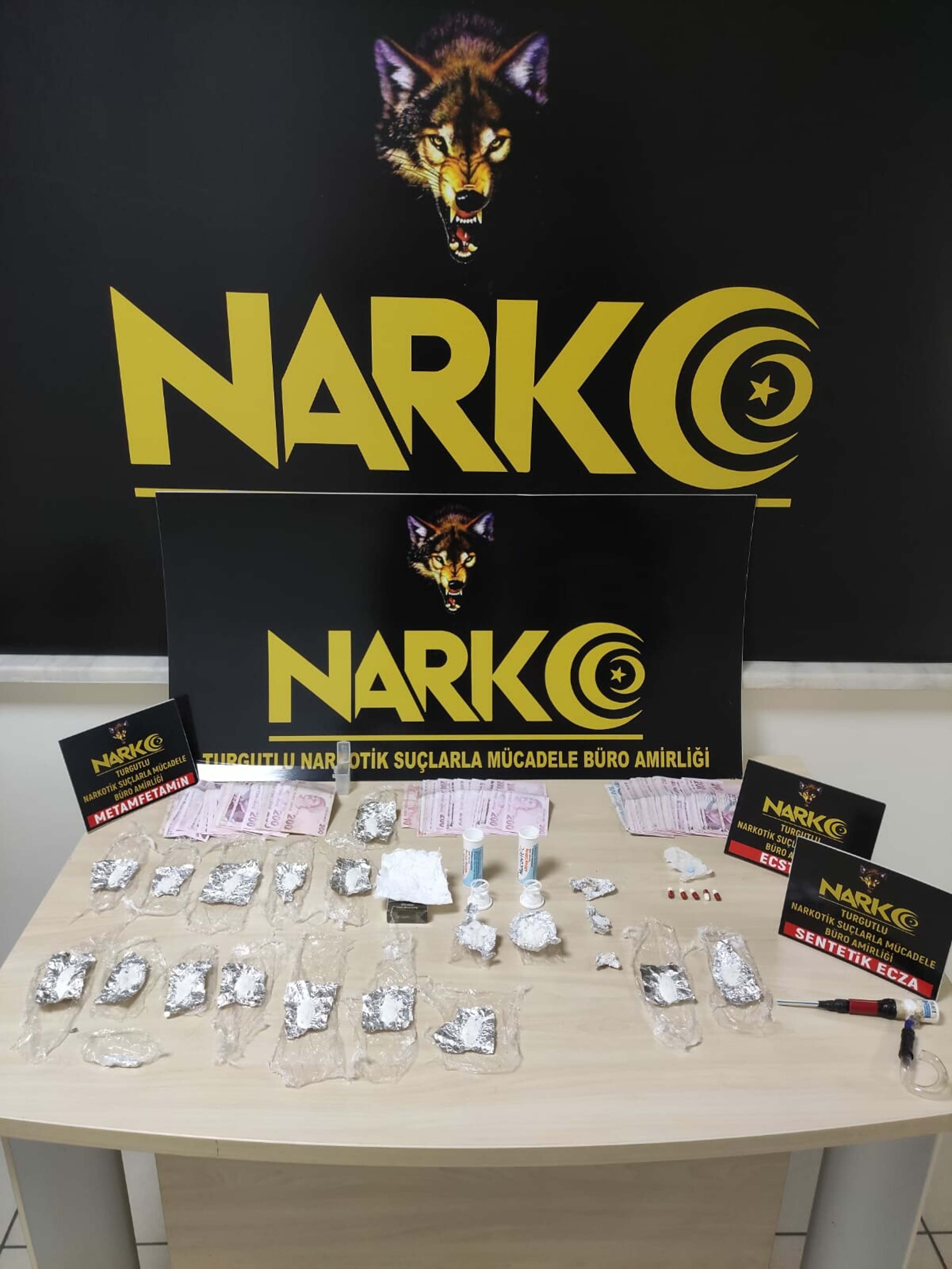 Turgutlu Narkotik Suçlarla Mücadele Büro Amirliği ekipleri 'Uyuşturucu veya uyarıcı madde imal ve ticareti' yapan kişilere yönelik çalışma başlattı. Turgutlu Cumhuriyet Başsavcılığı koordinesinde yürütülen soruşturma kapsamında belirlenen adreslere 31 Mart'ta operasyon düzenlendi. Operasyonda Ayşe U. (38), Semra G. (38), Uğur A. (33), Muhammet E. (35), Adil M. (52) ve Yahya T. (55) gözaltına alındı. Şüphelilerin üzerlerinde ve ikametlerinde yapılan aramalarda 22 parça halinde satışa hazır toplam 44,70 gram metamfetamin, 5 sentetik hap ile uyuşturucu ticaretinden elde edildiği belirtilen 26 bin 715 TL ele geçirildi. Gözaltına alınan 6 şüpheli 1 Nisan'da adliyeye sevk edildi. Şüphelilerden Ayşe U., Uğur A. ve Muhammet E. çıkarıldıkları mahkemede tutuklandı, diğer şüpheliler adli kontrol şartıyla serbest bırakıldı. (DHA)